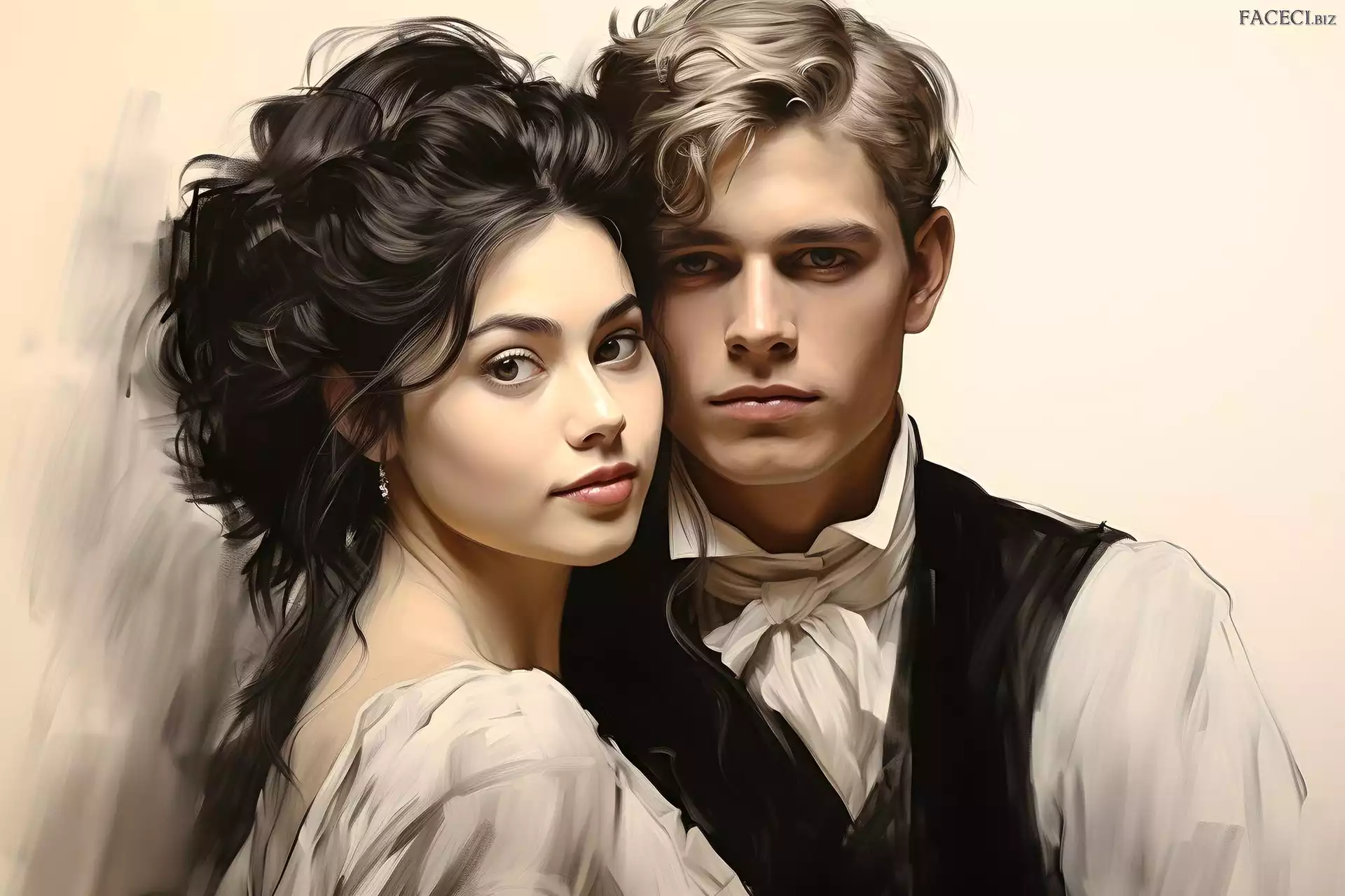 Portret, Mężczyzna, Grafika, Para, Kobieta - faceci.biz